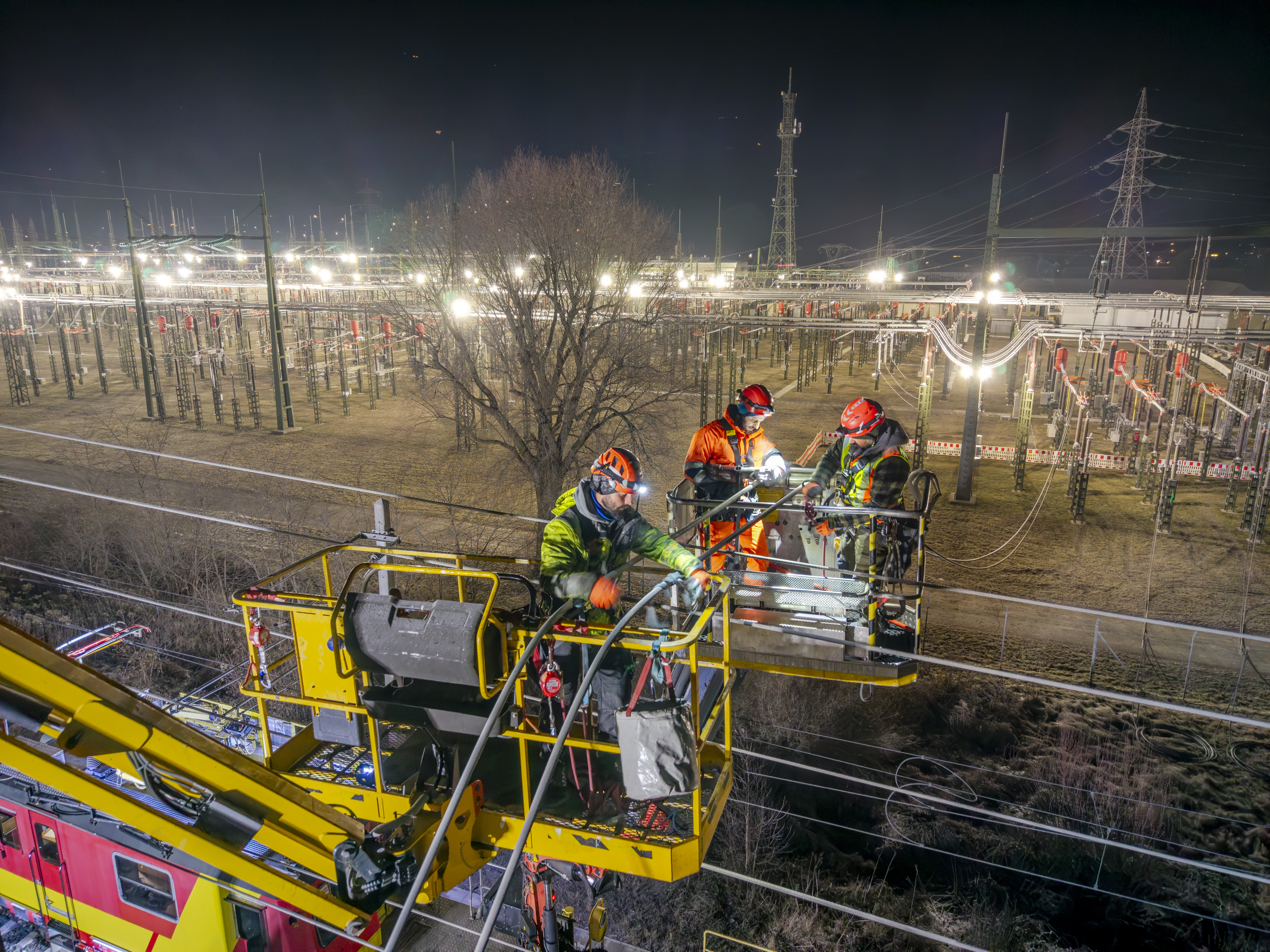 Nächtliche Arbeiten über der Bahntrasse