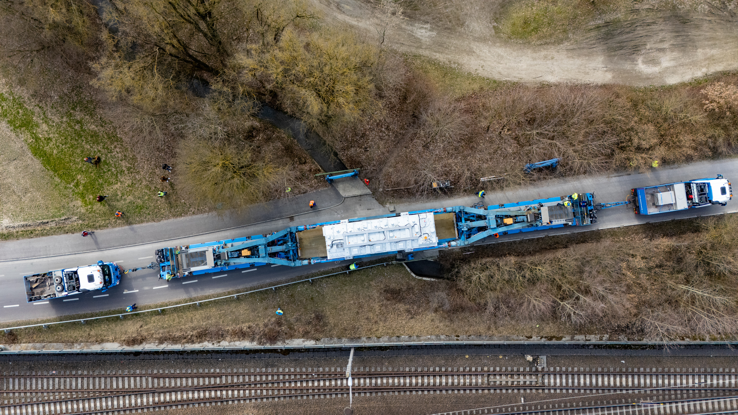 Besonders knifflig gestaltete sich zudem die Eisenbahnunterführung im Südpark: Hier betrug der Spielraum lediglich fünf Zentimeter. Im Schritttempo und unter permanenter Überwachung durch erfahrene Einweiser wurde die Engstelle sicher gemeistert.