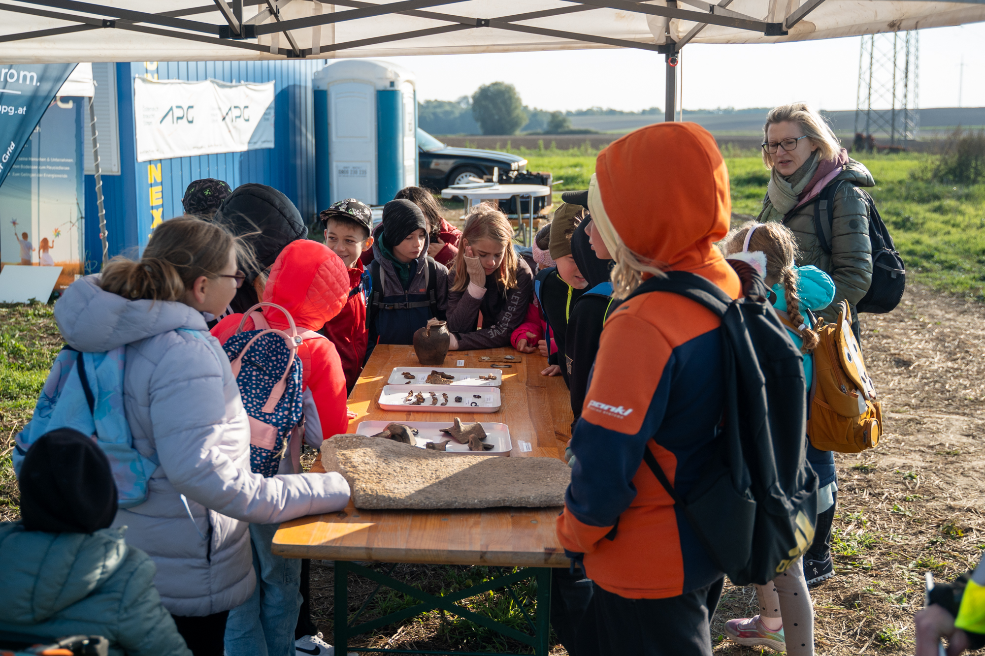 Neben den Archäologinnen informierten Expert:innen von APG bei der Veranstaltung über die Bedeutung des neuen Umspannwerks Spannberg für die regionale Stromversorgung und die versorgungssichere, leistbare Energiewende in Österreich. Das Projekt ist Teil des 9 Milliarden Euro schweren Investitionsprogramms zur Verstärkung des österreichweiten Höchstspannungsnetzes bis 2034, im Rahmen dessen APG ihre Leitungen und Umspannwerke aus- und umbaut.