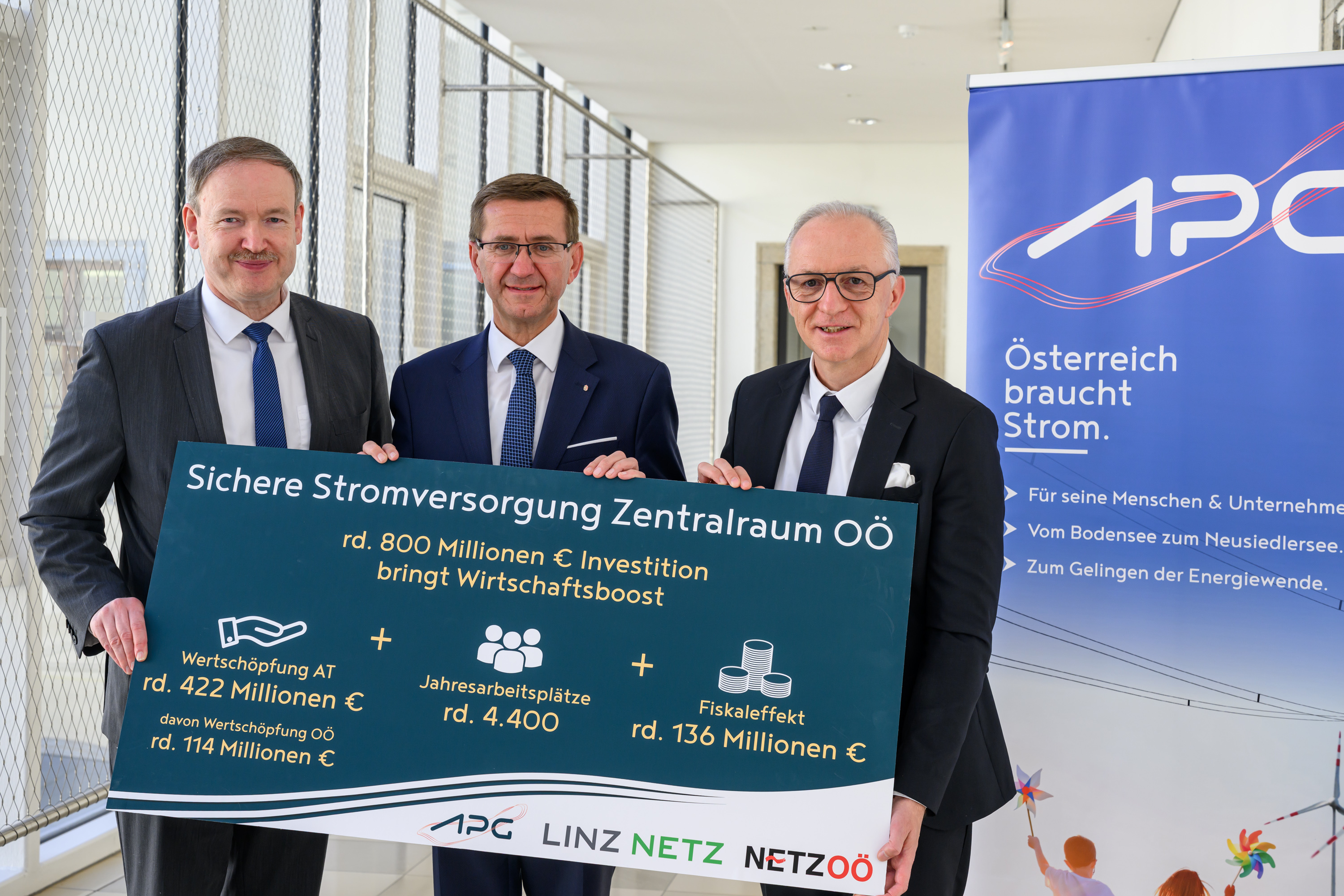 Economica-Studie belegt: Das Partnerprojekt Sichere Stromversorgung Zentralraum Oberösterreich von Austrian Power Grid AG (APG), Netz Oberösterreich GmbH (Netz OÖ) und LINZ NETZ GmbH (Linz Netz) sichert rund 4.400 Jahresarbeitsplätze und löst 422 Millionen Euro Bruttowertschöpfung in Österreich aus.