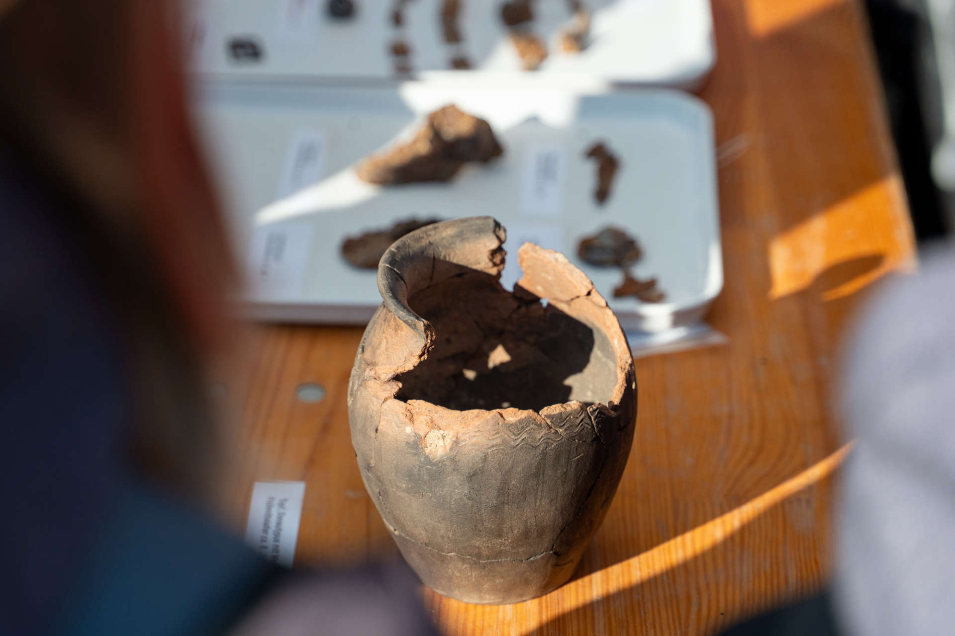 - Zu den Funden aus der Jungsteinzeit zählen Keramikfragmente sowie ein Reibstein, mit dem Getreide zu Mehl verarbeitet wurde.
