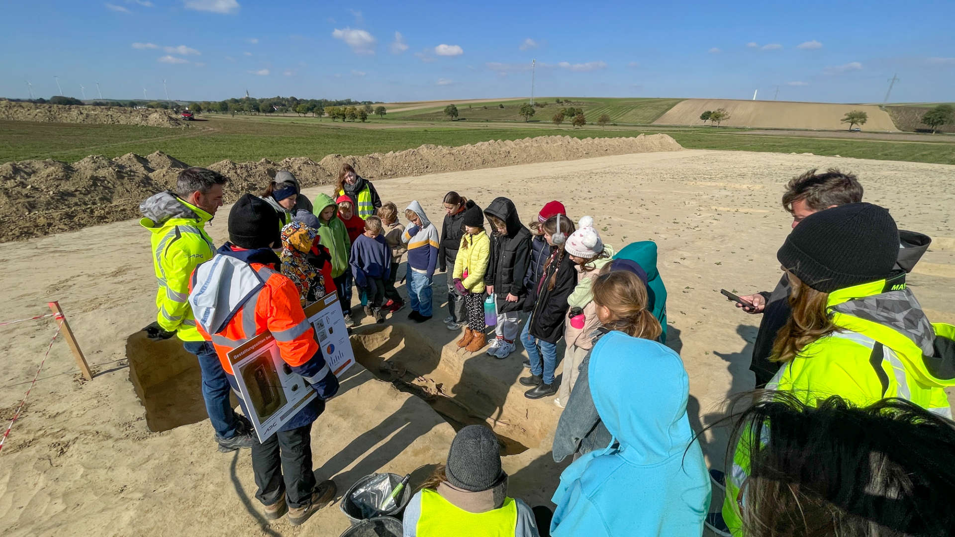 Im Rahmen geführter Touren bestaunten am 3. Oktober beim „Tag der offenen Ausgrabung“ über 200 Besucher:innen die zahlreichen archäologischen Funde, die seit August auf der APG-Baustelle freigelegt und an diesem Tag für die Öffentlichkeit zugänglich gemacht wurden: